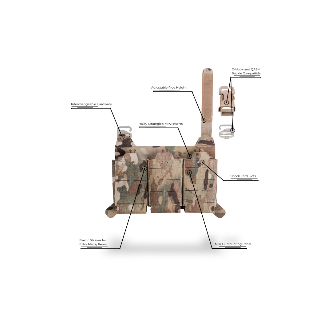 The MDLR™ has been designed to integrate seamlessly with the ACRS™ Base while remaining compatible with industry-standard placard mounting systems. Adjustable ride height and interchangeable mounting hardware allow users to tune the placard for different setups, whether running a chest rig or a plate carrier.