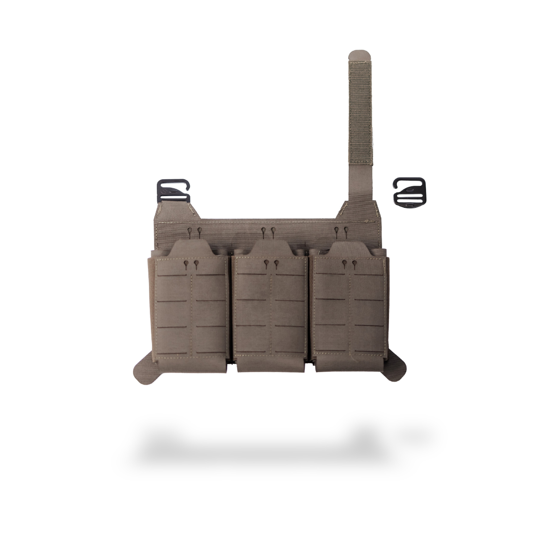 Designed as a versatile magazine placard, the MDLR™ supports secure carriage of 5.56mm magazines while maintaining rapid access and adaptability. Elastic retention allows the placard to carry up to six magazines when required, while the front MOLLE interface provides additional space for admin, tools, or mission-specific equipment.